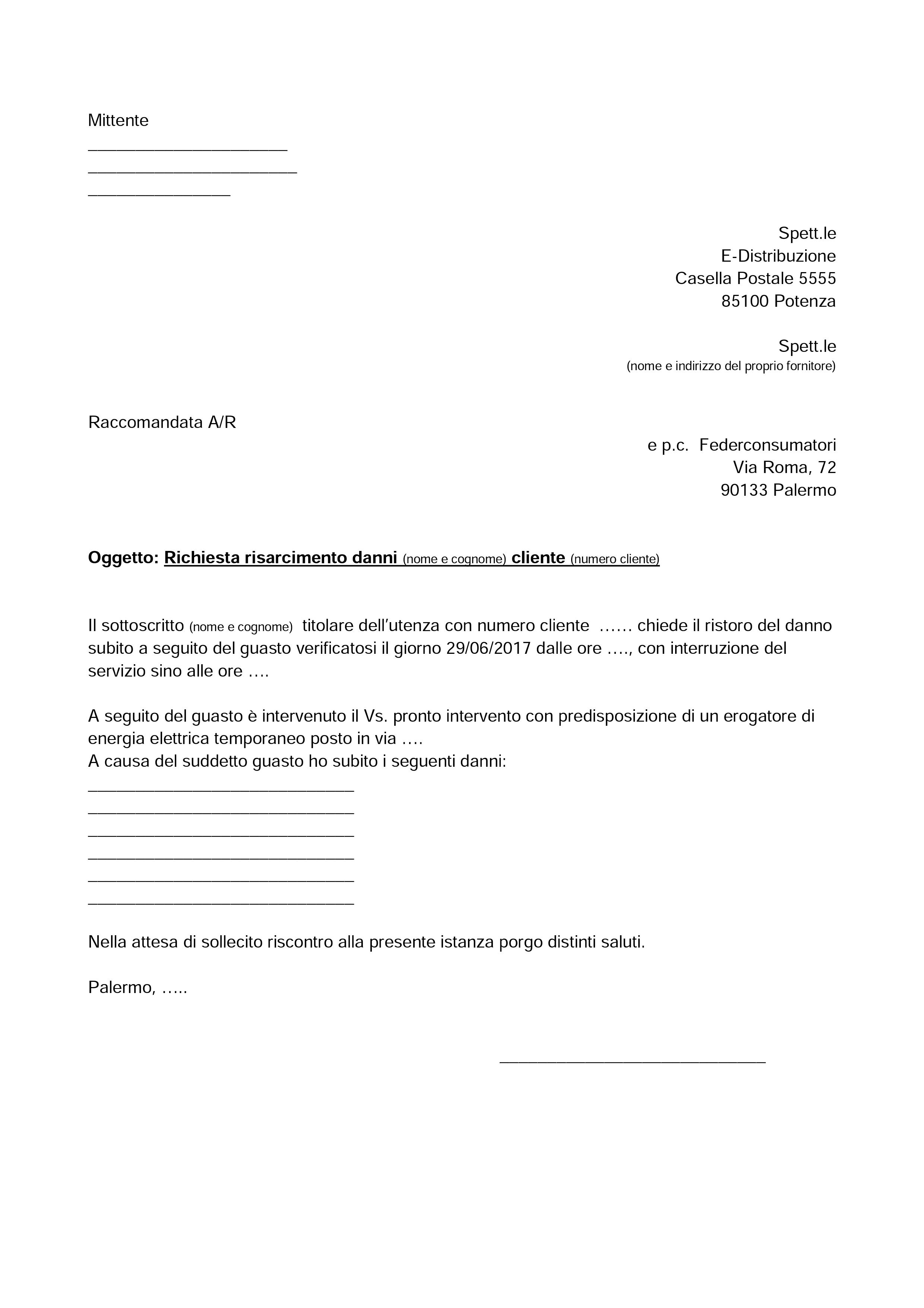 help racomandata richiesta di risarcimento per danni da gasolio anomalo ... Ossia, inoltrare, mediante raccomandata con ricevuta di ritorno, una richiesta di risarcimento indirizzata al distributore e alla compagnia petrolifera allegando copia della documentazione in...